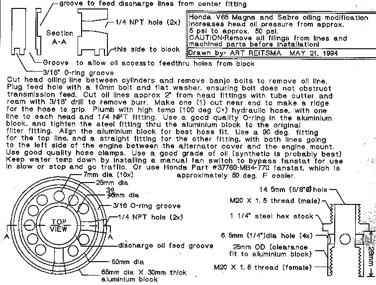 Wish you could still get the Tierney-Hollen product that's long gone from the marketplace? Well, grab this 253K jpeg image of Art's V4 Oil Kit plans and take it to your friendly neighbourhood aluminum machinist and ask him/her to make one for you.