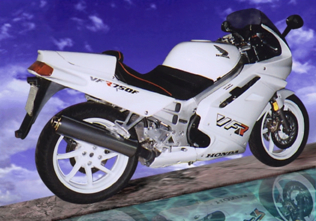 Since September 1995 I have been the happy owner of a 1993 Honda VFR750F. Here's a very nice photo (not of my own bike, but close enough) courtesy of Ricardo Menendez' photo gallery.