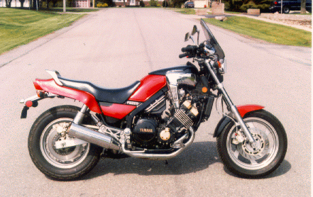 My wife's bike was a 1986 Yamaha FZX 750 Fazer -- way cool! Here is a larger colour gif. Have a look at a huge colour gif of a friend's Fazer too if you like. She had the Fazer from 1990 to 2001. In February 2000, we bought her a 1998 Yamaha YZF600R2 Thundercat. I have a bit of information about her YZF600R including some accessory reviews.